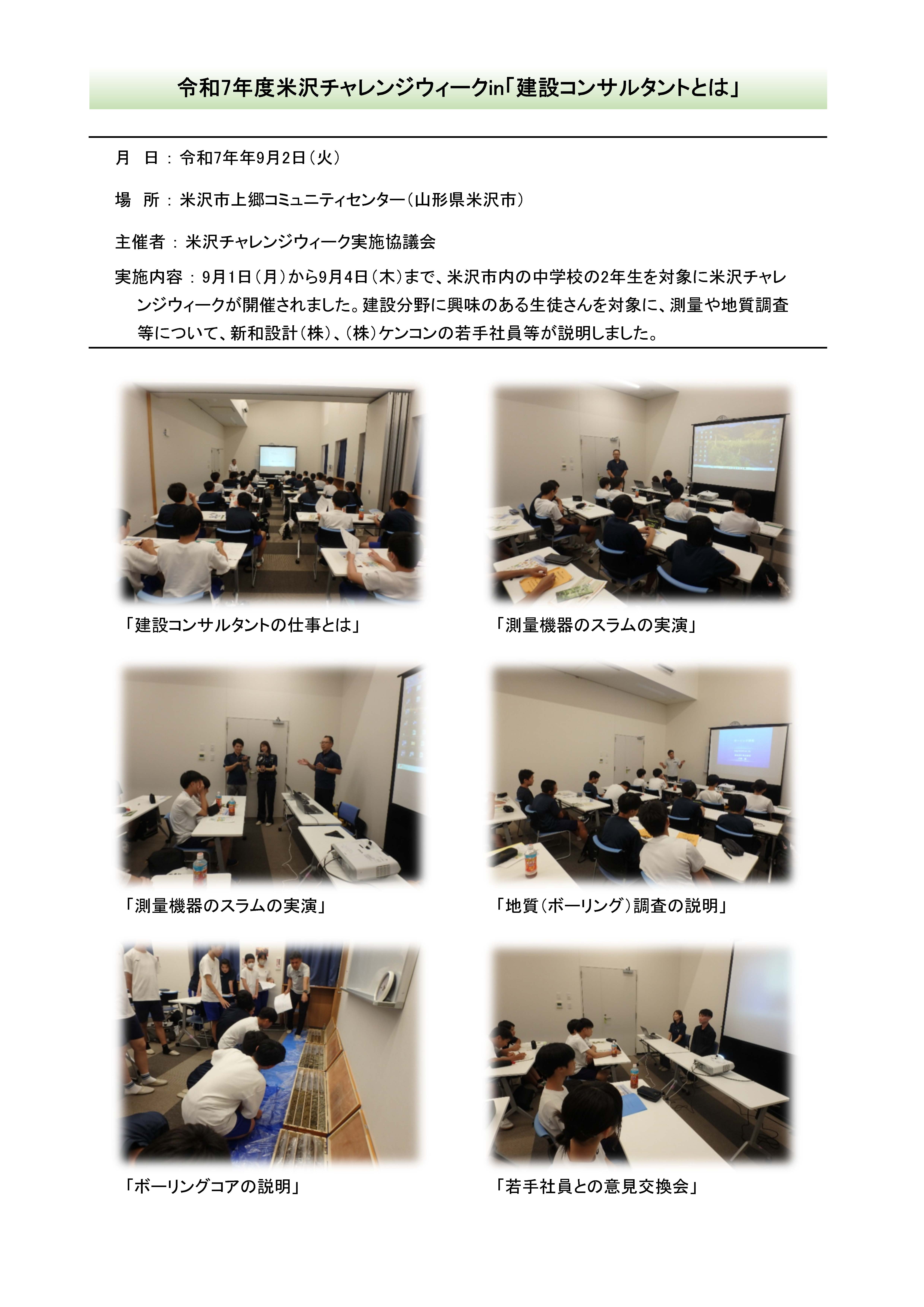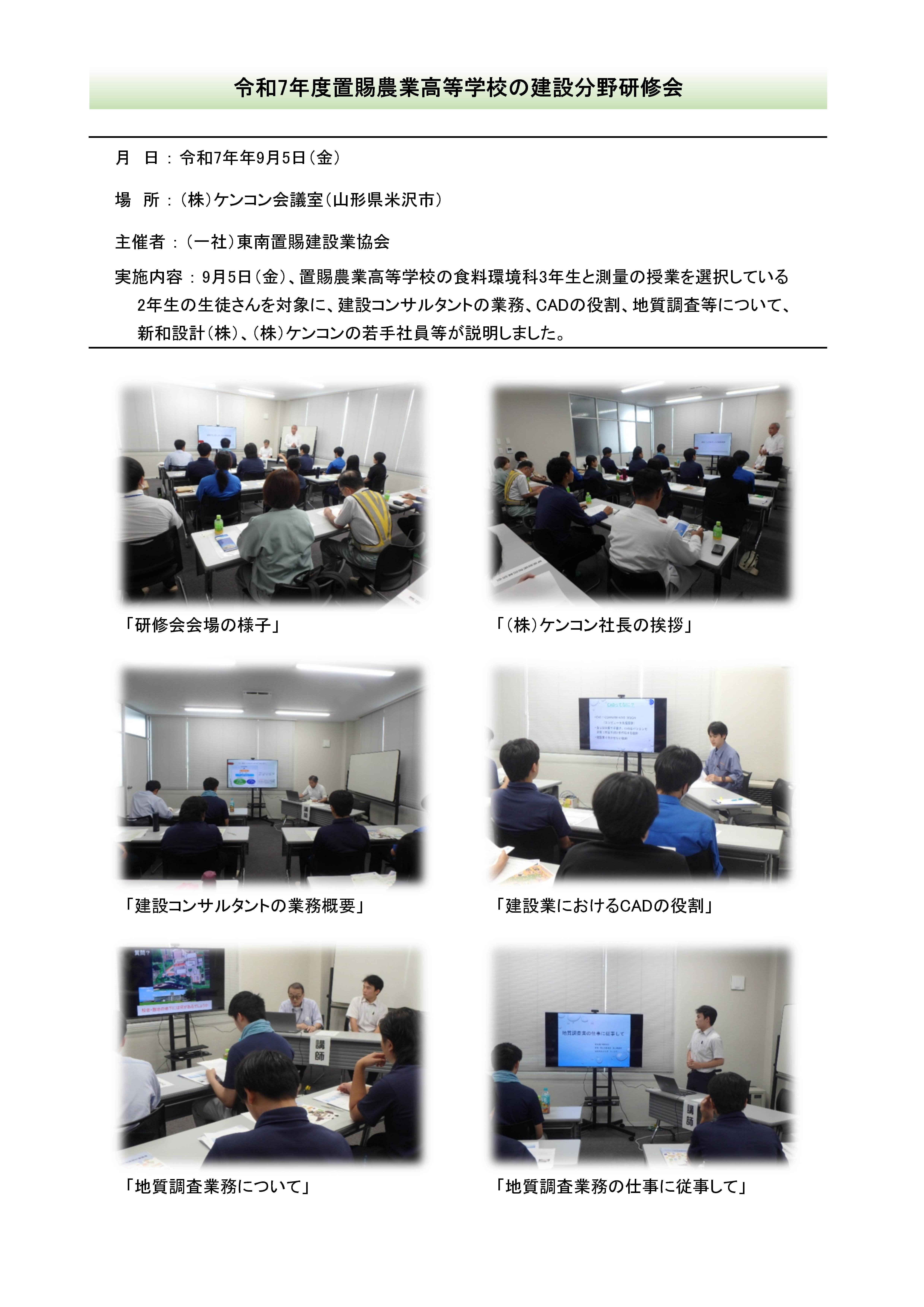 山形県置賜総合支庁建設部主催による 「建設分野で働くことの魅力を伝え建設分野への若手人材の就業促進を図ること」を目的として、 弊社若手社員が説明者として参加させていただきました。